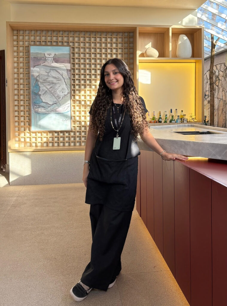 Entre os destaques está Maria Eduarda Sahd Innocêncio, de 18 anos, estudante do segundo semestre na Unaerp. Atuando como recepcionista no “Lounge Gourmet Eventos”, assinado pelo escritório Andrade Arquitetos, ela já garantiu vaga na própria empresa após o fim da mostra. “Foi uma oportunidade incrível de aprendizado e de contato com novas ideias, materiais e pessoas. Trabalhar na CASACOR me permitiu enxergar além da faculdade e ter uma vivência real de mercado. Me senti muito acolhida”, afirma.