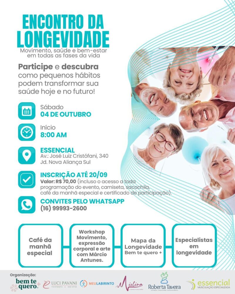 Os participantes ainda terão acesso ao Mapa da Longevidade, uma ferramenta inédita e gratuita, desenvolvida pela Bem te quero+, que mostra, de forma clara e acessível, como cada pessoa está cuidando do presente e se preparando para o futuro. Quem realizar o Mapa durante o evento receberá orientações personalizadas e a possibilidade de tirar dúvidas com a equipe de gerontólogos da Bem te quero+.