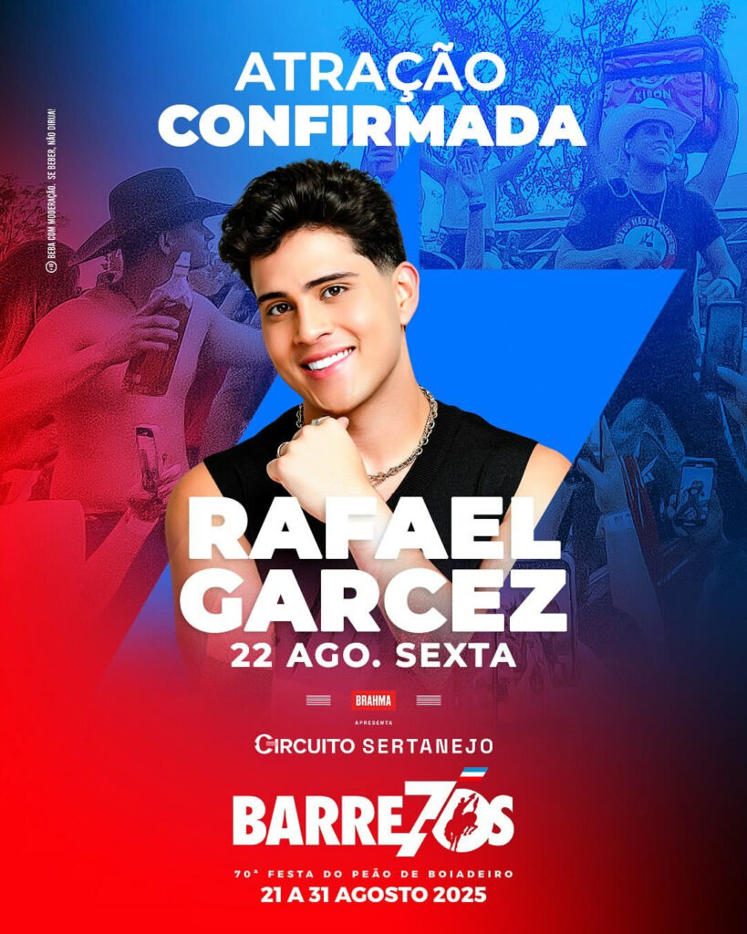 A 70ª edição da Festa do Peão de Barretos acaba de confirmar a participação de uma das grandes promessas da nova geração sertaneja: Rafael Garcez. O cantor fará sua estreia no evento no dia 22 de agosto, com apresentação no Palco Camping, dividindo a programação com os artistas VH & Alexandre e Us Agroboy. Conhecido como o “palhaço que virou cantor”, Rafael vem se destacando no cenário musical com carisma, talento e uma trajetória singular. Descoberto por Tirulipa e apadrinhado por Luan Pereira, o artista tem conquistado o público e a crítica com sua autenticidade e repertório envolvente. Hits como “Falava Mal da Roça”, em parceria com Luan Pereira, e “Metade Metade”, com Guilherme & Benuto, acumulam milhões de reproduções e consolidam seu nome no topo do sertanejo atual. Recentemente, Garcez emocionou os fãs ao realizar o sonho de conhecer a Disney, durante uma viagem aos Estados Unidos. Na mesma semana, teve mais um motivo para comemorar: sua composição “Nosso Sonho”, interpretada por Bruno & Denner, entrou para o Top 100 do Spotify Brasil, marcando mais um passo importante em sua carreira como compositor. A estreia de Rafael Garcez na Festa de Barretos representa não apenas uma conquista pessoal, mas também a confirmação de seu espaço em um dos maiores palcos da música sertaneja. Reconhecida como o maior evento do gênero na América Latina, a Festa do Peão é referência na valorização da cultura caipira e na projeção de novos talentos para o grande público. Ao longo de sete décadas, o evento tem sido palco de grandes encontros, consagrações e estreias históricas — e a de Rafael promete ser uma delas.