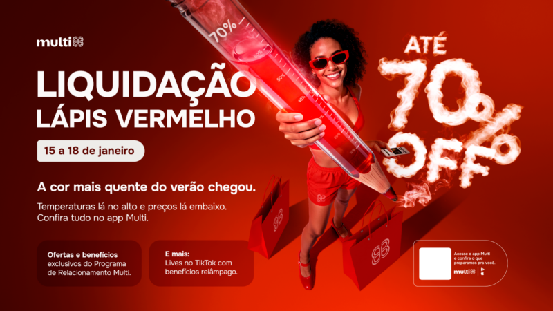 “A Liquidação Lápis Vermelho reflete a estratégia da Multiplan de integrar os ambientes físico e digital para ampliar o acesso às ofertas e facilitar a jornada do consumidor. Ao conectar a experiência nos shoppings ao ecossistema Multi, conseguimos entregar mais conveniência, informação e benefícios, potencializando os resultados para clientes e lojistas”, afirma Rodrigo Peres, Diretor de Marketing e Loyalty da Multiplan.