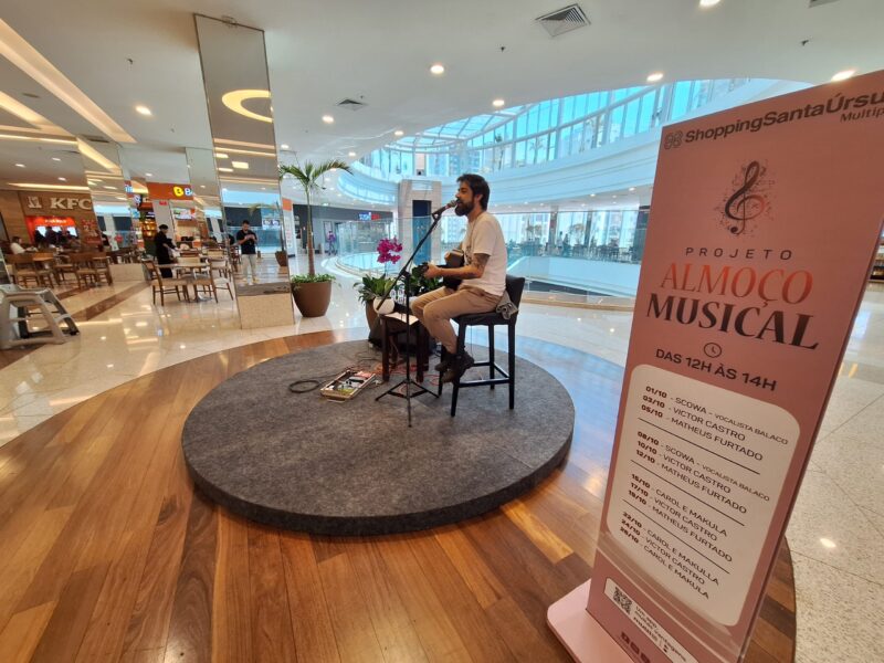 Após o sucesso da agenda comemorativa de setembro, quando celebrou seus 26 anos, o ShoppingSantaÚrsula dá continuidade ao projeto Almoço Musical em outubro. Às quartas, sextas e domingos, sempre das 12h às 14h, a Praça de Alimentação (no Piso 3) recebe apresentações gratuitas de artistas locais, transformando o horário de almoço em um momento de cultura e lazer.